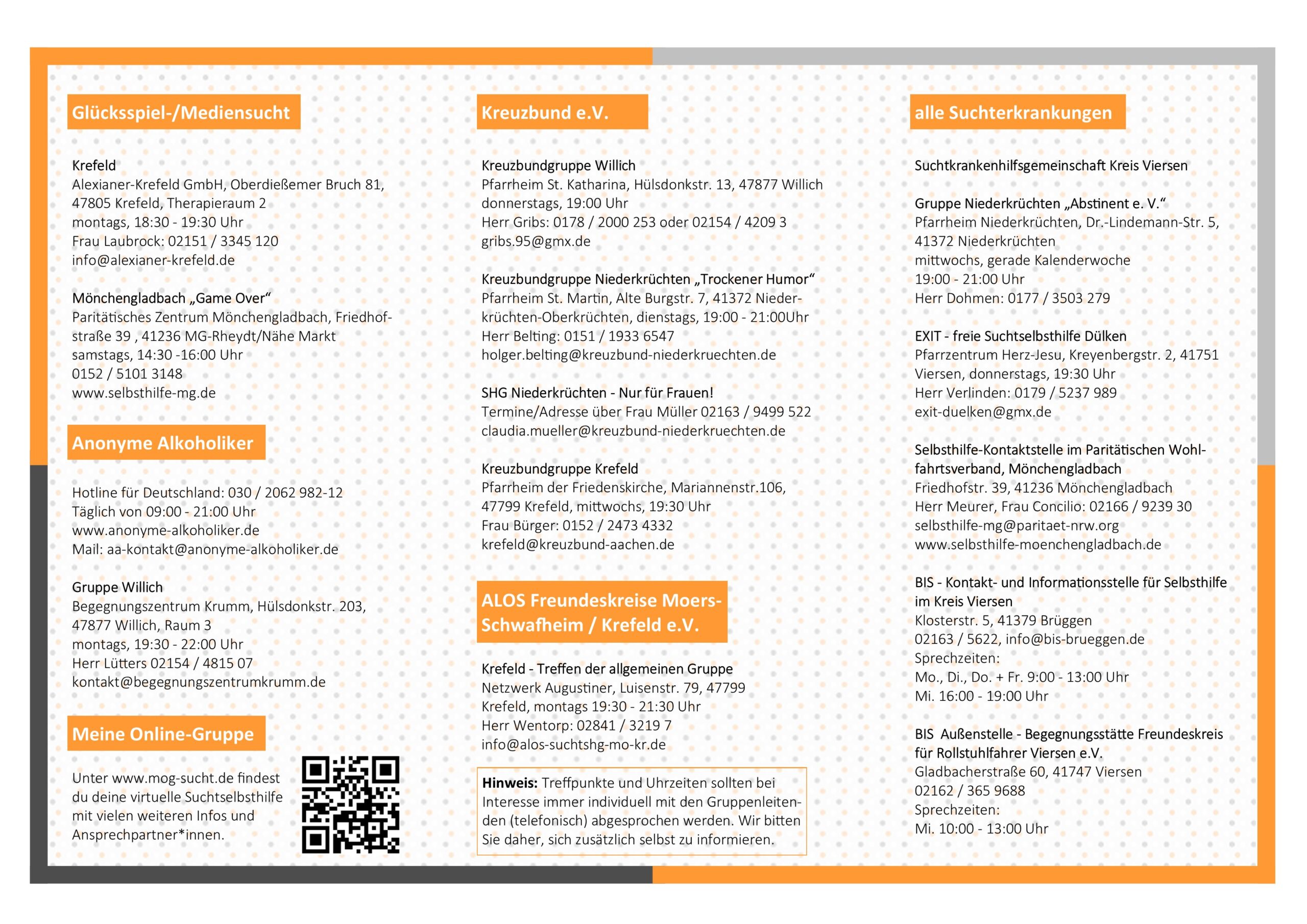 Weitere Selbsthilfegruppen für Abhängige und Angehörige im Kreis Viersen, finden Sie unter: